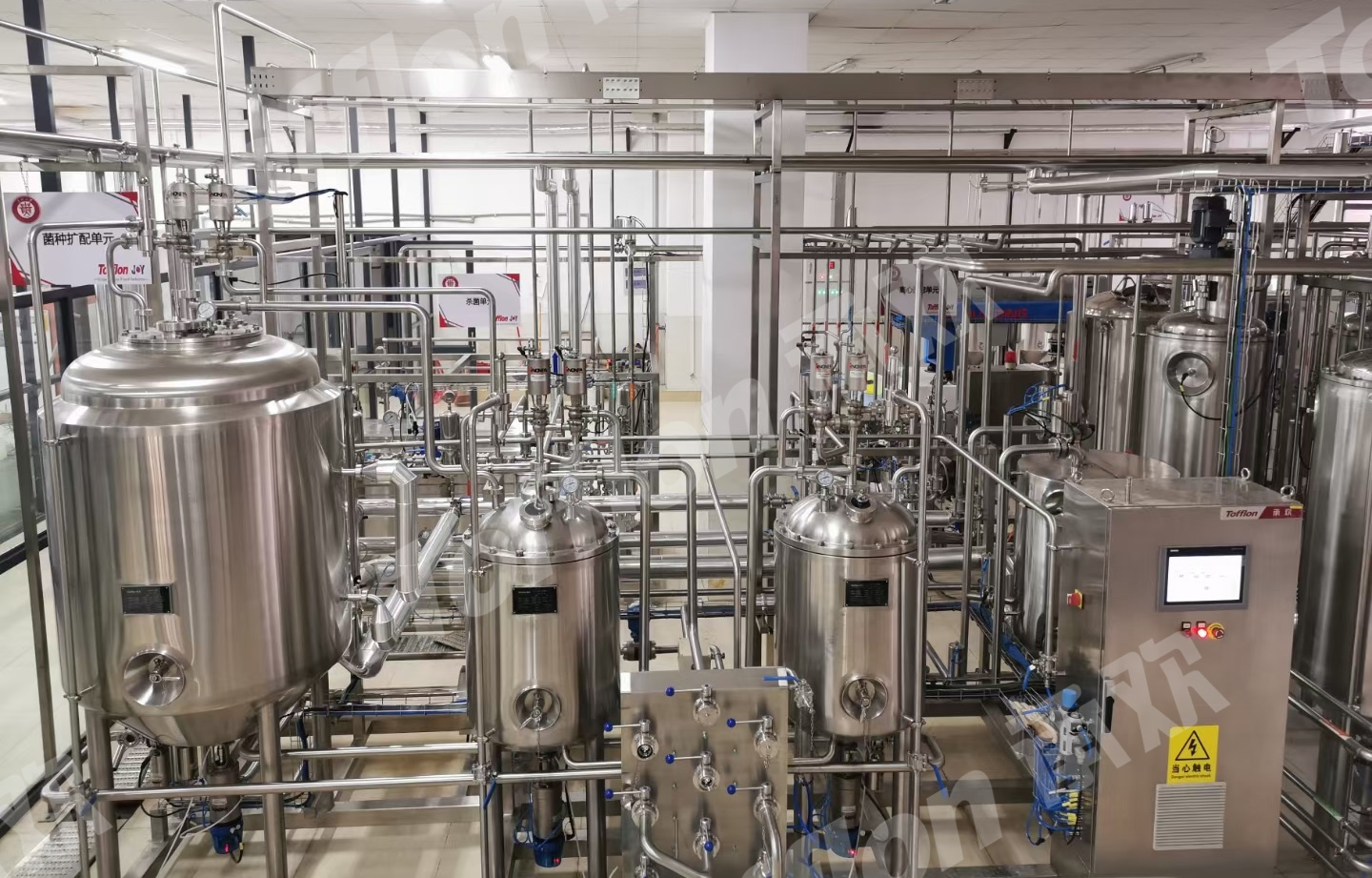 公司自主研發(fā)的大果粒多能套管式殺菌灌裝系統(tǒng),應用于多條生產線上,并得到客戶的充分認可。貴州大學-東富龍承歡智能釀造孵化基地項目完美竣工,可滿足精釀啤酒、發(fā)酵型米酒、米香型白酒等多種酒飲的中性實驗。寧夏沃福百瑞枸杞飲料、山西秀容沙棘果汁、北京德大中藥提取、廣西天盛茶酒等多條生產線也在逐步安裝調試中。