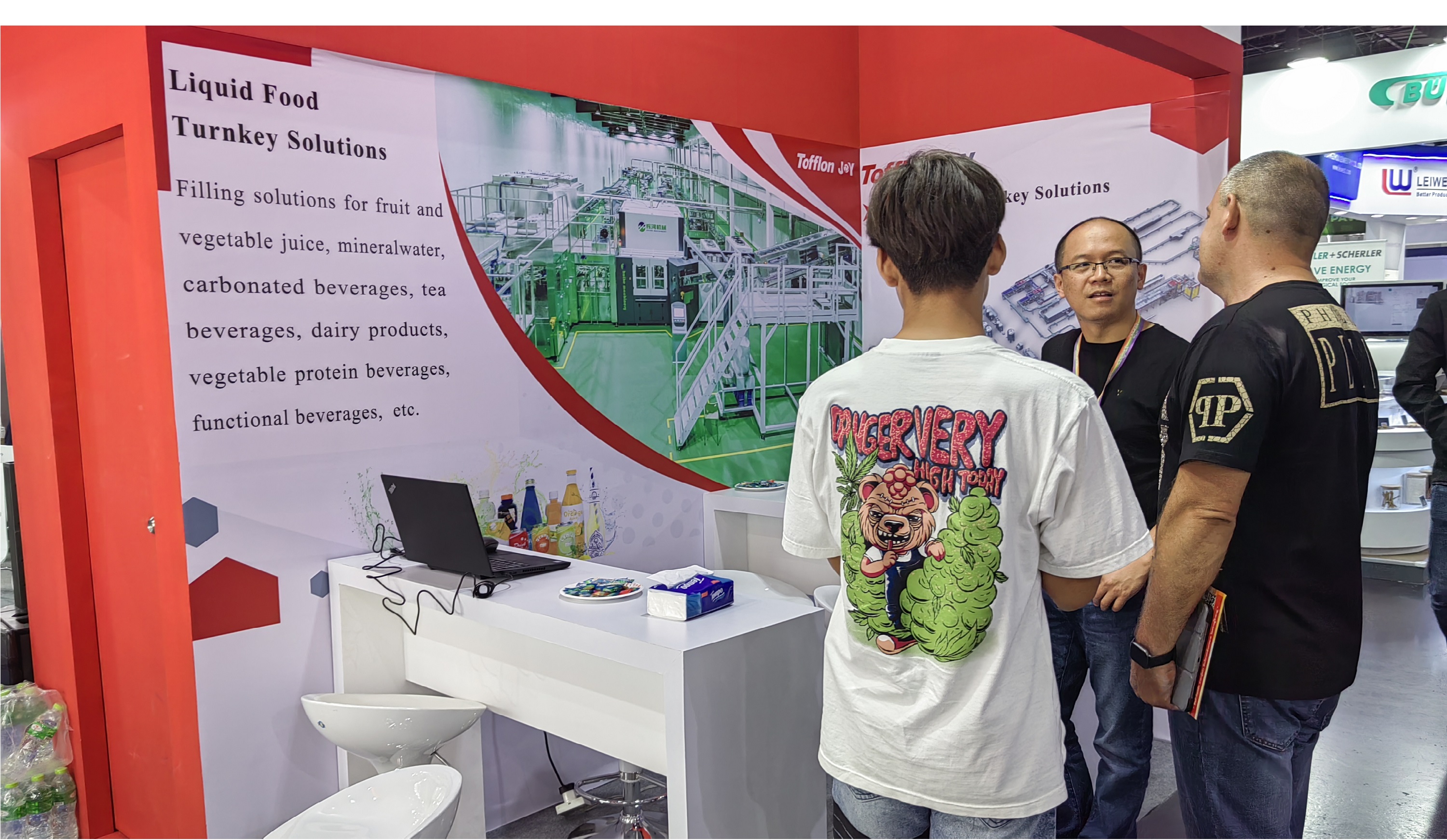 展會(huì)現(xiàn)場(chǎng)熱度一路飆升,工作人員始終以飽滿的熱情、耐心地向參展觀眾介紹我們的產(chǎn)品優(yōu)勢(shì)和技術(shù)成果。大家在輕松愉快的氛圍中交流想法、分享經(jīng)驗(yàn),互通有無(wú),討論創(chuàng)新理念,共商技術(shù)貿(mào)易發(fā)展趨勢(shì),不同的理念、技術(shù)和經(jīng)驗(yàn)的相互碰撞,為食品飲料行業(yè)的發(fā)展帶來(lái)全新的思路。