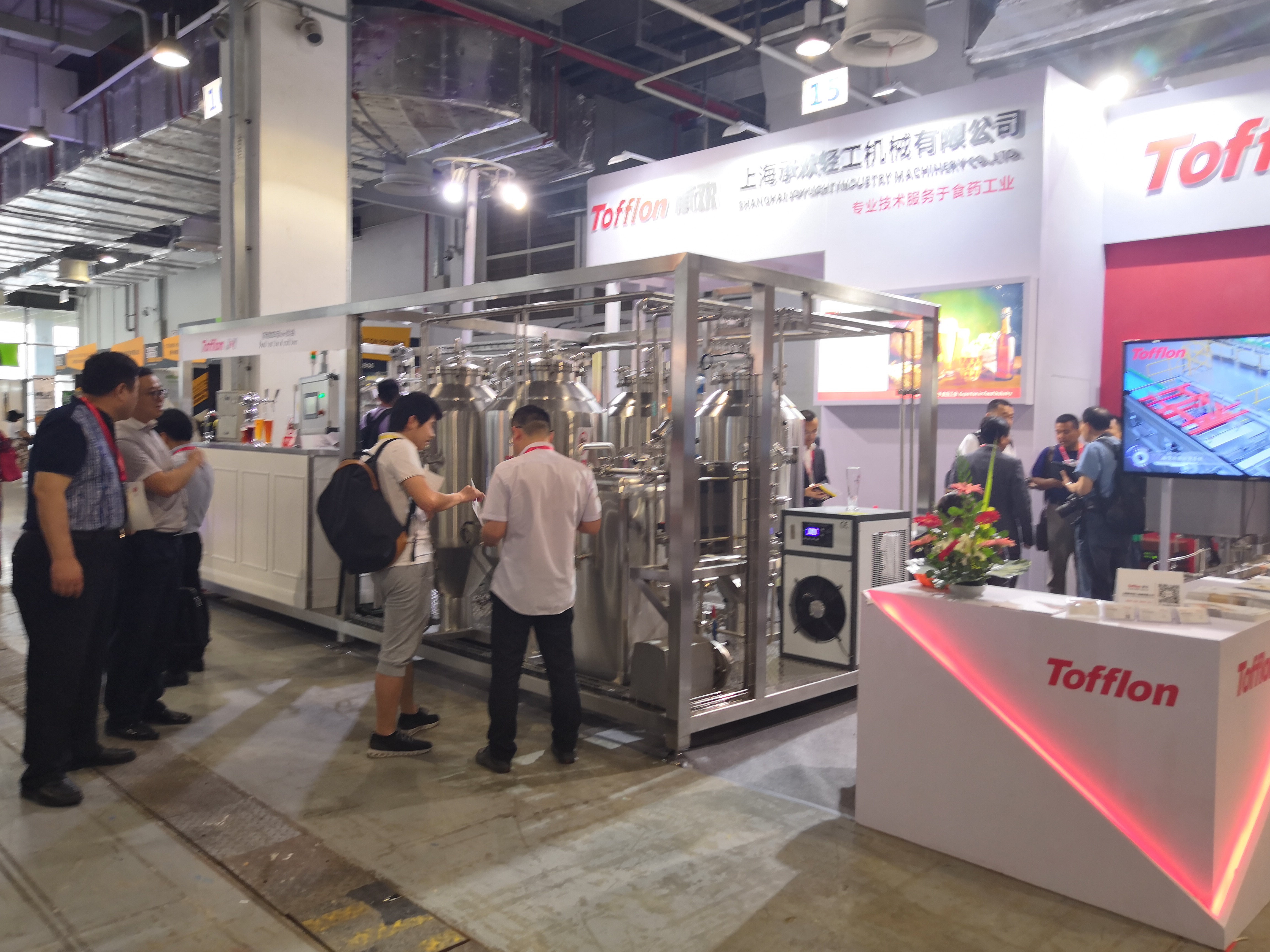 在本次展會上,我司展出了自主研發(fā)的精釀啤酒小試線以及參與研發(fā)的易拉罐精準電子灌封組合機,從工藝技術研發(fā)、工程設計、設備生產制造、安裝調試、技術培訓,我們?yōu)槟峁┮徽臼浇昏€匙工程服務。